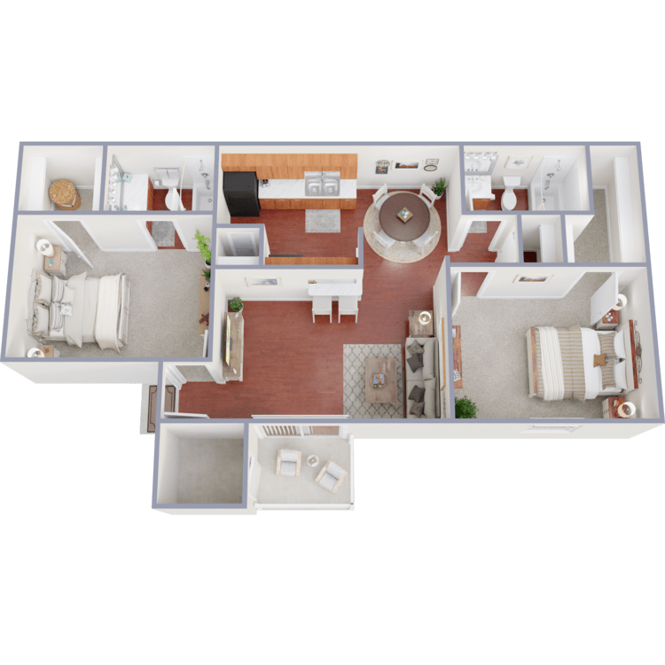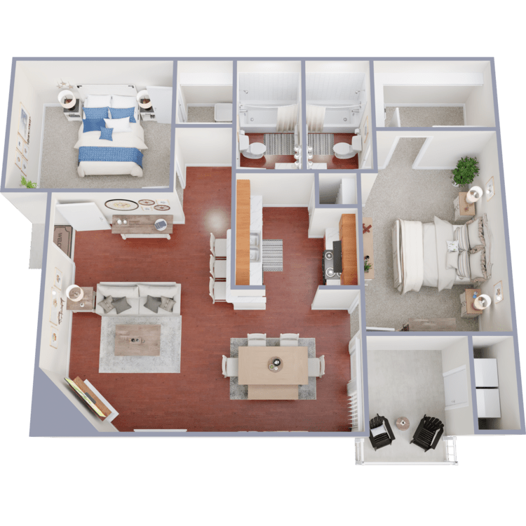 Please choose from our spacious one and two-bedroom apartments for rent. Each residence includes a spacious floor plan with walk-in closets and extra storage. Also included are ceiling fans, central air and heating, a dishwasher, and a refrigerator. A balcony or patio increases your living space and creates a relaxing spot to unwind.